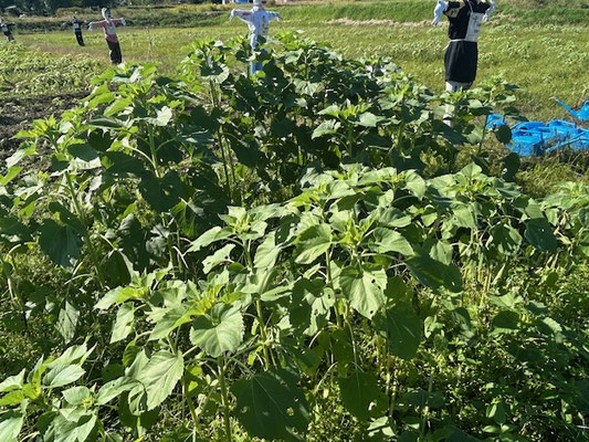 ひまわり畑のひまわりは、おかげさまですくすくと育っています。