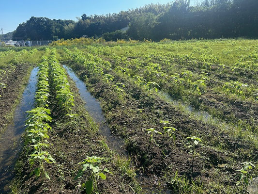 台風が過ぎたあとだったせいか、畑に水が溜まった状態だったため