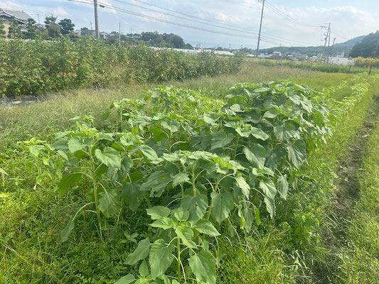 台風7号が近畿を通過しましたが、ひまわり畑のひまわりは元気に育っています。