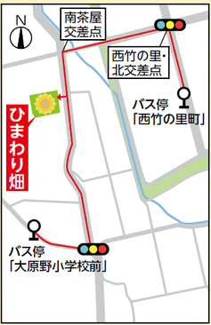 ひまわり畑は昨年の場所から、南春日町(光華女子学園大原野グランド北側)に